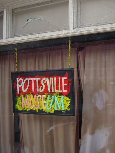 The sign on the front door of the Pottsville Museum painted by Dave Johnson. Photo © Pottsville Museum.