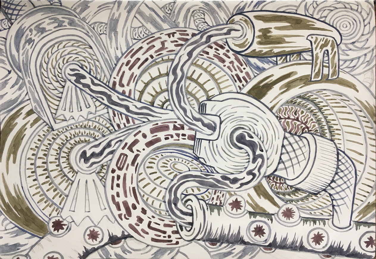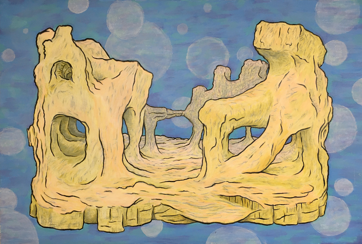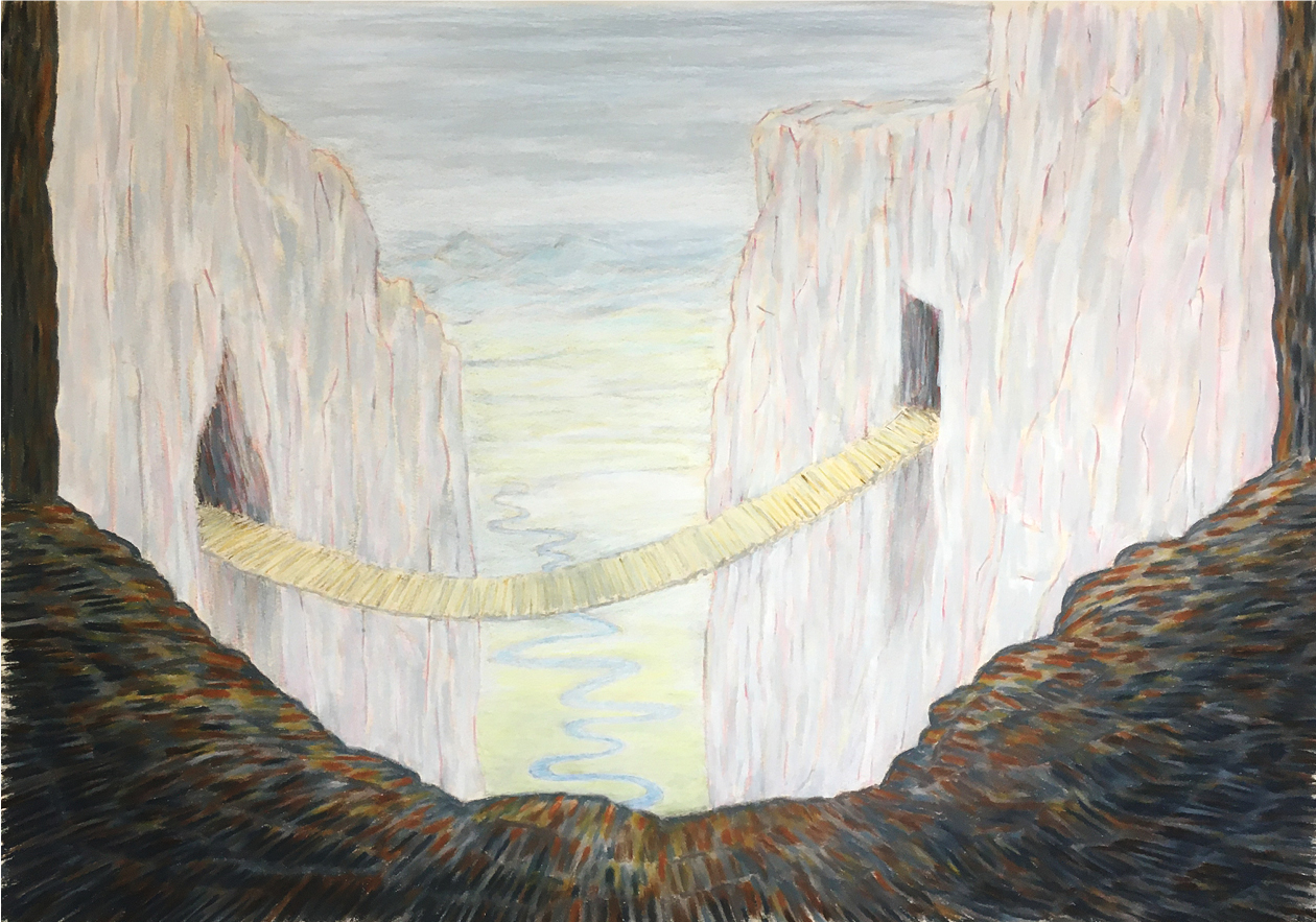 cul de sac meets cliffhanger 28" x 18.5" wax pastel and colored pencil on paper