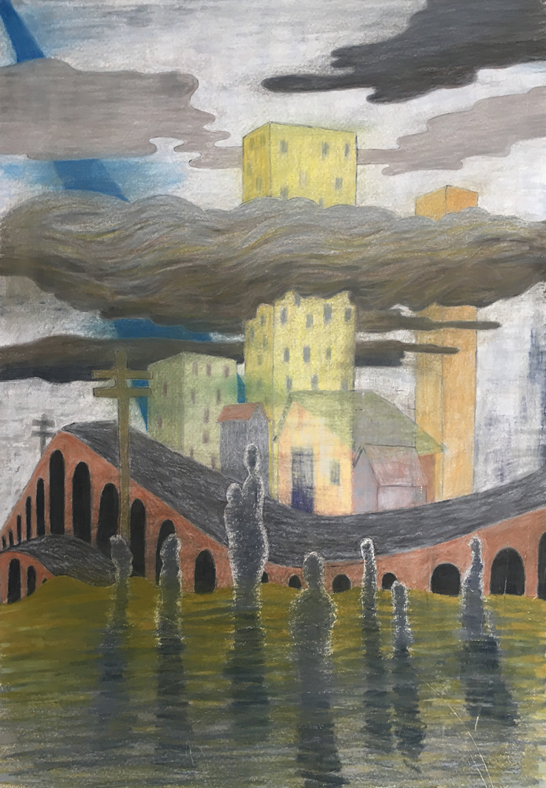 chorus and city 27" x 39" wax pastel on paper