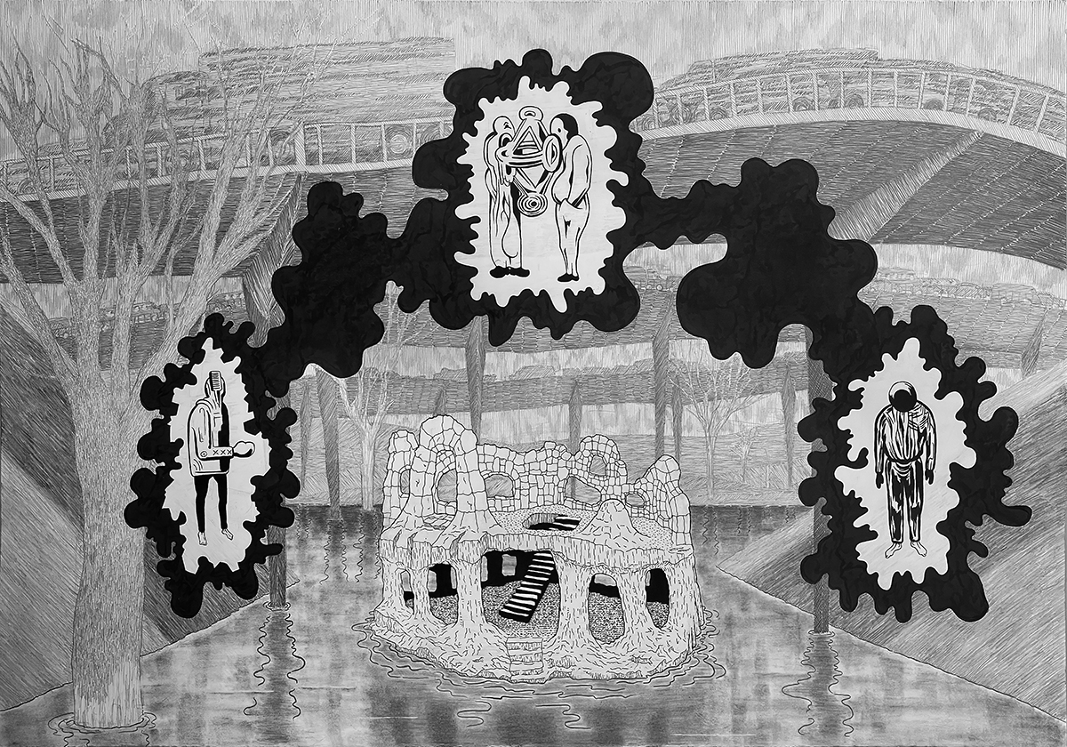 under the bridges---chicago 44" x 30" pencil and ink on paper